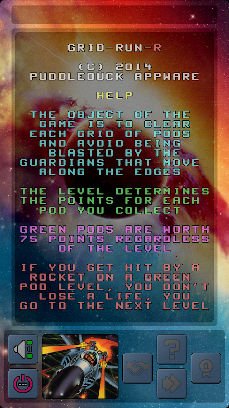 This game is based on Transversion, which was similar to the 80's classic GridRunner. The object of the game is simple ... clear each grid of pods and avoid being blasted by the Guardians around the edge.