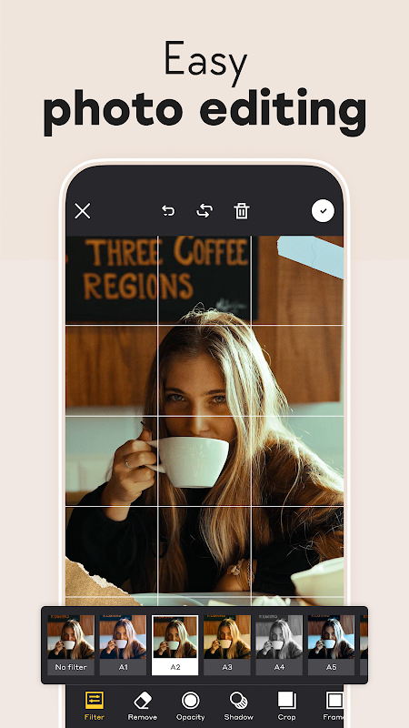 از داخل برنامه یک عکس جدید بگیرید یا یک عکس موجود را از کتابخانه خود بارگذاری کنید ، از بین 6 گزینه رایگان و 30 حق بیمه گزینه مناسب انتخاب اندازه را انتخاب کنید و اجازه دهید شبکه ها تصویر را برای شما برش دهند! تنها کاری که شما باید انجام دهید این است که عکس های بدست آمده را به ترتیب پیشنهادی برنامه به اینستاگرام خود ارسال کنید. حتی لازم نیست کاشی ها را در دستگاه خود ذخیره کنید زیرا اشتراک گذاری در Instagram در برنامه جاسازی شده است!