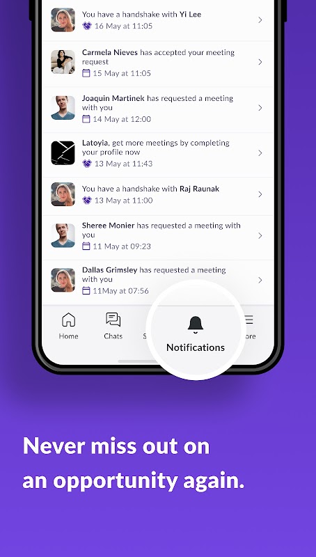 گرفتن اولین هوش شده راه حل های شبکه های رویداد مصنوعی است. کمک به شما به حق مردم در رویدادهای دیدار و قادر می سازد به چت و دیدار آنها را در یک راه سریع و بدون درز. دست دادن بیش از یک اتصال است و منجر به تعامل از طریق مسنجر برای به اشتراک گذاشتن ایده ها و شروع پروژه با هم.