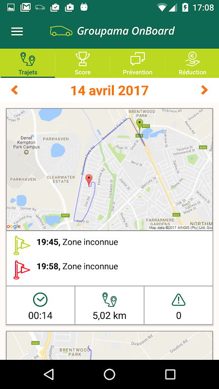 - une évaluation de votre conduite et une visualisation de votre progression grâce au calcul de votre score journalier,