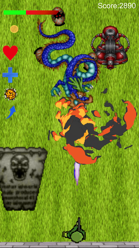 اگر یک هیولا به دیوار پایین صفحه برخورد کند، گیج HP کاهش می یابد. وقتی گیج HP در سمت چپ بالا به 0 رسید، بازی تمام می شود.