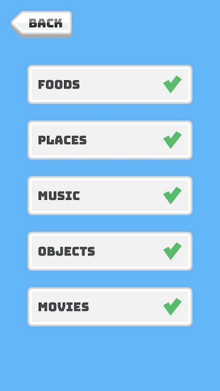 The app also allows you to select or deselect certain categories you might not want to include while playing!