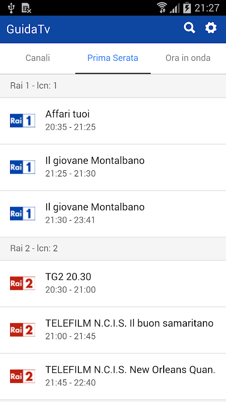 - Visualizzazione programmi prima serata e "ora in onda"
