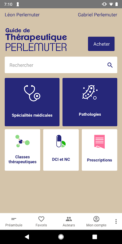 Accédez au contenu exhaustif du Guide de Thérapeutique Perlemuter en version électronique sur cette application ! L’une des spécialités du livre est ouverte gratuitement à la consultation, le contenu complet peut être débloqué par un achat.