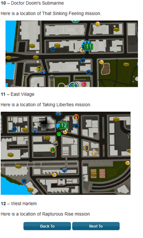 Every playable character in the game was described in detail – which applies not only for superheroes, but for arch villains and common people too. Separate parts of the text focuses on the vehicles and different ways to seize them. In this guide you will also find a lot of interesting, useful and transparent maps, which are referring to every significant part of the game (eg. collectables, characters, locations). We hope you will enjoy them!