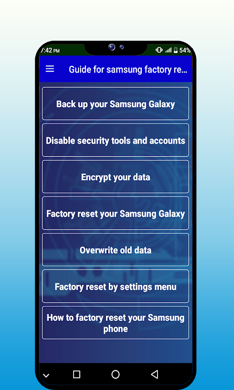Guide for samsung factory reset