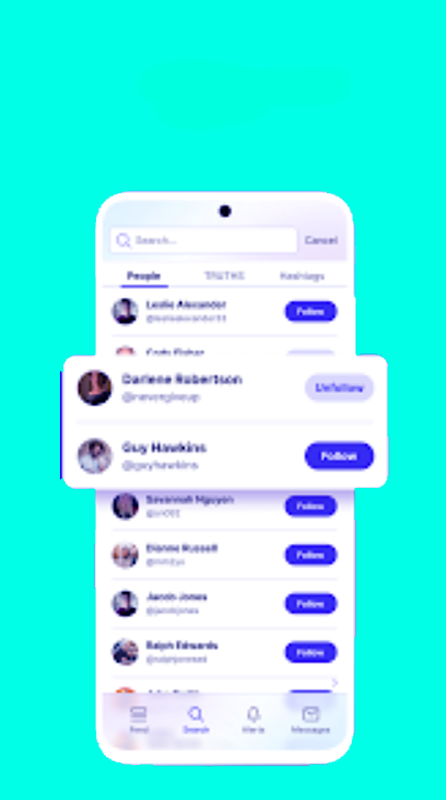 Search - Truth Social really starts to become interesting as you connect with others. Search for a voice that you find interesting and easily follow them right from the search list or view their profile first before deciding.