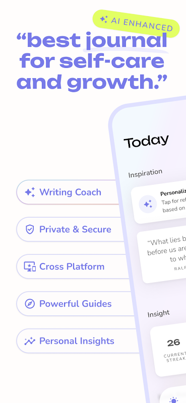 • سوالات شخصیشده دریافت کنید: هوش مصنوعی ما هنگام نوشتن در ژورنال هدایتشده خود، اعلانهای بیدرنگ ارائه میکند، و به شما کمک میکند افکار را بررسی کنید و دیدگاههای جدیدی را کشف کنید.