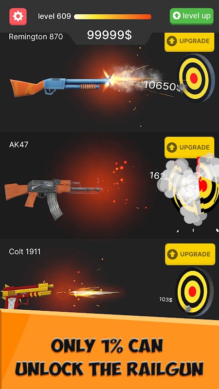 Gun Idle - بازی های ساخت تفنگ ما ویژگی های منحصر به فردی را برای شما به ارمغان می آورد مانند: