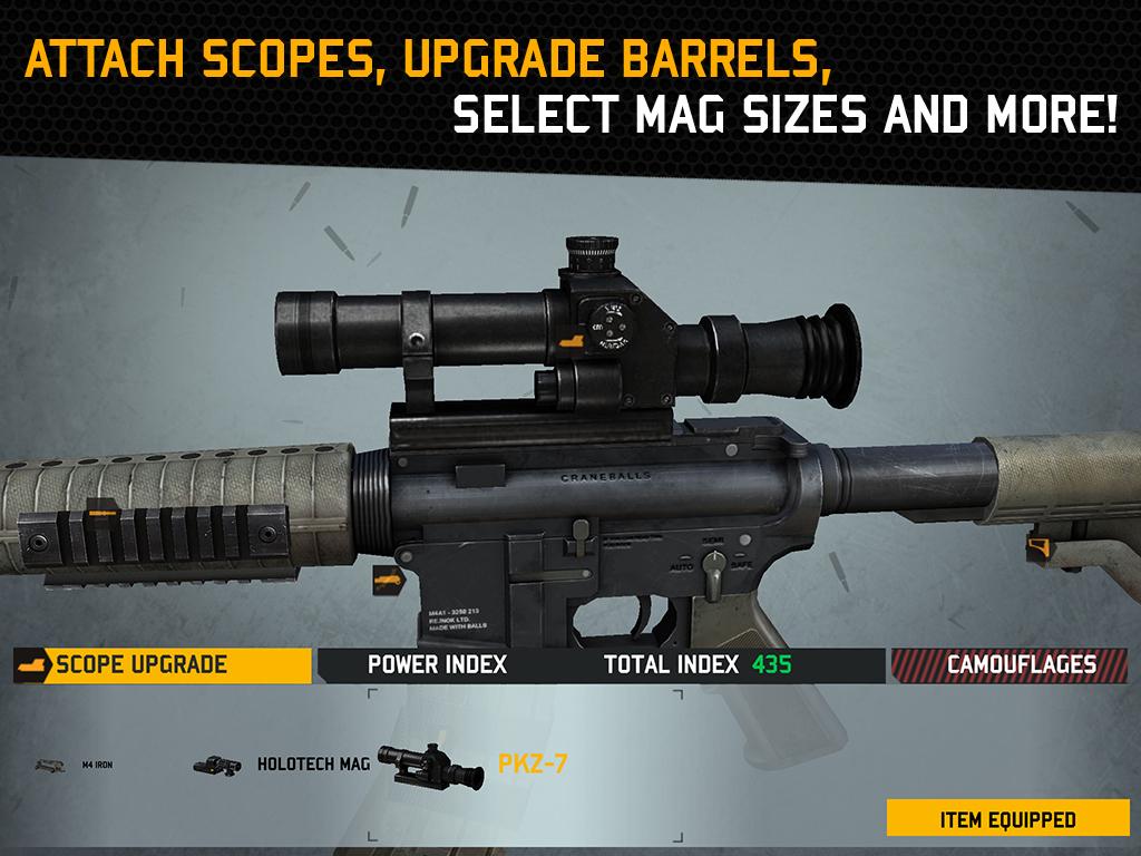 خبر خوب این اینجا ختم نمی شود. تر وجود دارد! هر تفنگ همراه با انتخاب گسترده ای از ارتقاء. تمام اسلحه به طور کامل قابل تنظیم می باشد! اضافه کردن پوزه و بشکه ارتقاء، سوار حوزه قرمز نقطه نوری، گسترش کلیپ مجله شما و ضمیمه سهام پس برای مبارزه با پس زدن. این تا حد زیادی بهبود عملکرد تفنگ خود را و آن را به ابزار نهایی برای پایین آوردن چکش را.