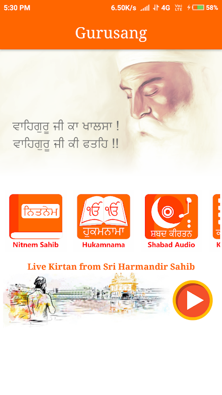 5. Live Kirtan : we provide live kirtan from different gurudwara sahib. So anywhere you can hear the current kirtan or hukamnama.