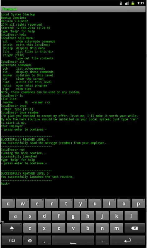 هک کردن به حساب جدید و یا کشف اطلاعات کلیدی خواهد سطح مهارت خود را افزایش می دهد. همانطور که شما رسیدن به اهداف خود، به شما نزدیک و نزدیک تر به دستیابی نهایی حرکت خواهد کرد. بیش از 50 سطح عمیق!