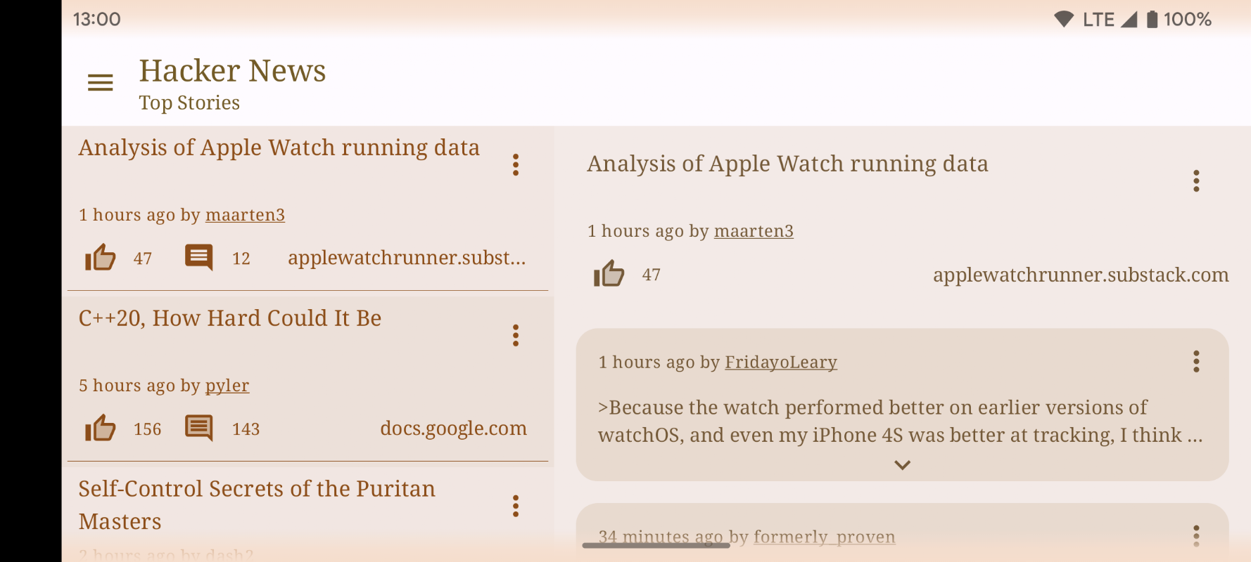 برنامه Hacker News که از Android 12 Material You در تلفن ها و تبلت ها پشتیبانی می کند.