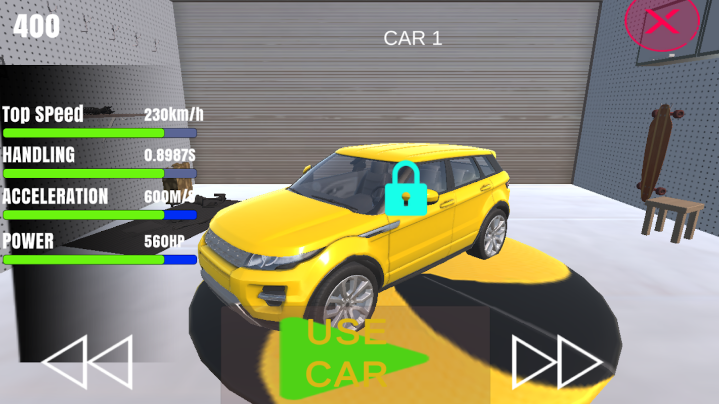 50 سطح برای تکمیل وجود دارد. سطح اول باز است. هنگامی که بازیکن سطح اول را تمام می کند، سطح دوم باز می شود و چرخه تا سطح 50 ادامه می یابد. دکمه شتاب اولین دکمه در گوشه پایین سمت راست و دومین دکمه شکست است. در لبه وسط سمت راست دکمه دنده قرار دارد که با فشار دادن آن از حالت درایو (D) به عقب (R) و بالعکس تغییر می کند. در سمت راست پایین، کنترل های جهت وجود دارد.