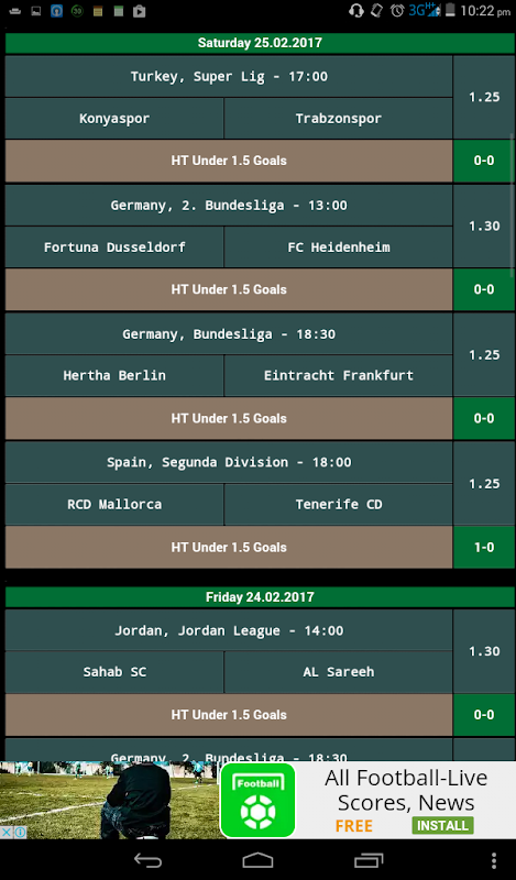 Tips provided in this app is most useful for soccer prediction for continued winning. All that is needed is to set a bankroll and use this tool to earn more money - get your bankroll onward and upward.