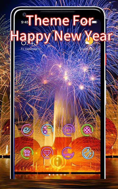 Happy new year firework theme adds a more textural red color, with mysterious blue and gold colors showing a galaxy-like brilliance in the universe, and injects the soul of high-tech. In this theme, you will find shining wallpaper and icon. If you're bored with your current life, you might as well try this colorful theme to make your screen more vivid and beautiful.