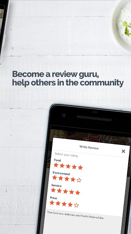 - Reviews: Did the atmosphere work for you? Did you get Chinese when you wanted Italian? Is the restaurant near you or far? Decide on the restaurant you're willing to spend your money on, based on restaurant-specific information provided on the app including price range and ratings obtained from weighted averages of user generated feedback.