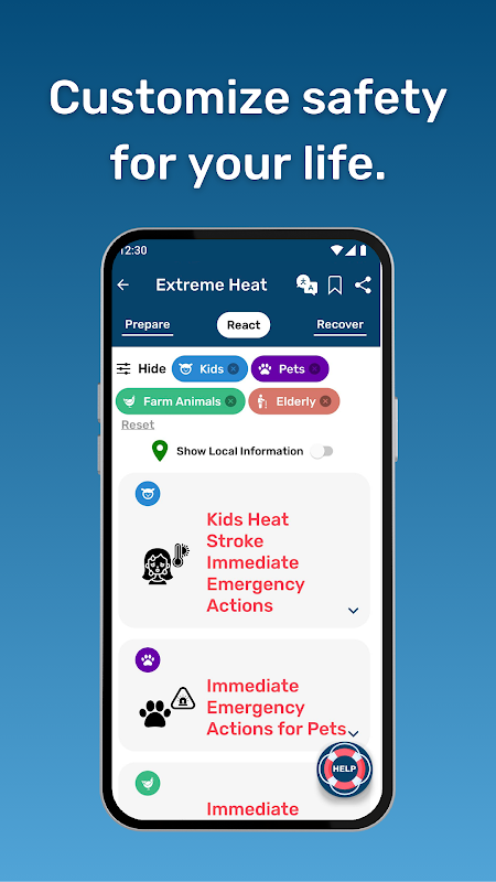 به سرعت اطلاعات اضطراری را برای موقعیت در دست پیدا کرده و تنظیم کنید و دستورالعملهای مهم را برای دسترسی آسان در زمانی که بیشتر به آنها نیاز دارید نشانهگذاری کنید. HazAdapt که اکنون به چندین زبان موجود است، از سفارشی سازی برای جوامع مختلف و نیازهای منحصر به فرد خانواده شما پشتیبانی می کند.
