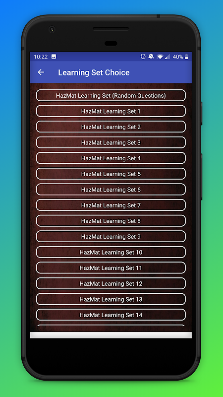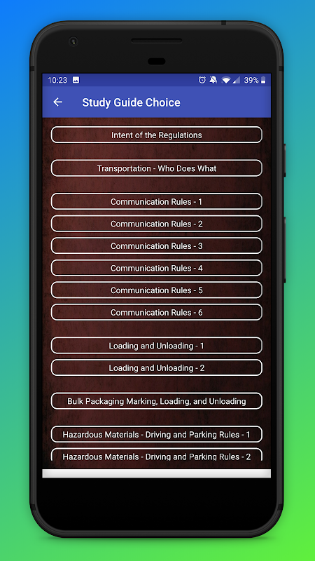 این برنامه شامل سوالات و پاسخهای آزمون hazmat از دستههای مختلف است:
