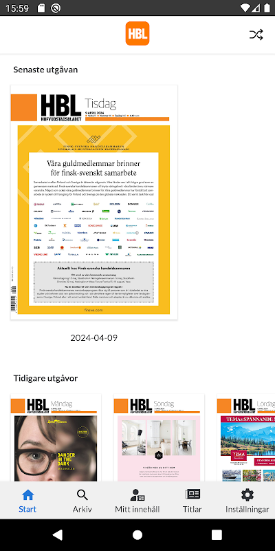 با HBL 365 چهار مجله الکترونیکی را در یک برنامه دریافت می کنید. نسخه های دیجیتال روزنامه های کاغذی Hufvudstadsbladet، Västra Nyland، Östnyland و مجله کودکان HBL Junior را بخوانید.