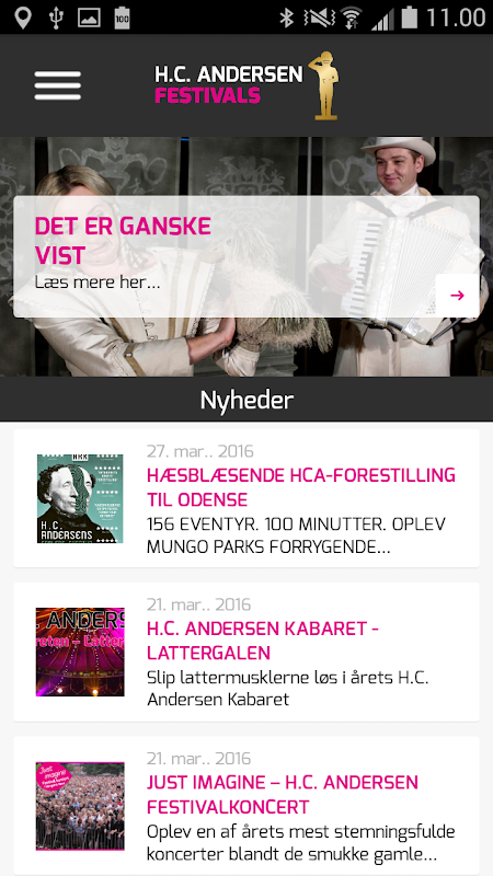 Vi håber, at HCA festivals’ app vil fungere som din ven under H.C. Andersen Festivalen, så du får mest ud af dit eventyrlige besøg i uge 34.