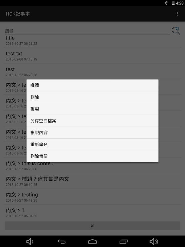 - Home page title, date, text search (the home page of the file can be the title of the title, modify the date or text as a keyword search, attention, search function can only search a layer of text within the folder, subfolders text Will search)