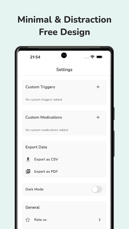 - طراحی شده برای سادگی - بدون اشکال پیچیده، فقط ثبت سریع سردرد.