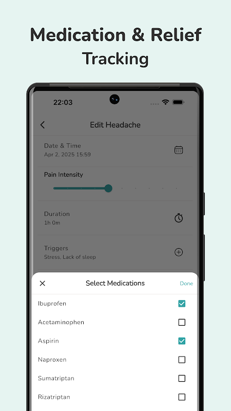با سردرد یا میگرن دست و پنجه نرم می کنید؟ ردیاب ساده و موثر سردرد ما به شما کمک میکند سردرد خود را ثبت، تجزیه و تحلیل و درک کنید—تا بتوانید گامهایی برای تسکین بردارید. بدون تنظیمات پیچیده، بدون حواس پرتی - فقط ردیابی سریع و آسان برای کمک به احساس بهتر.