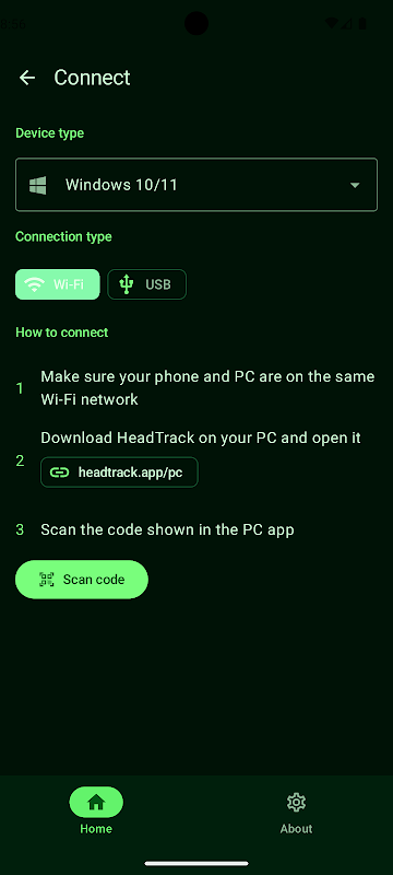 برنامه HeadTrack روی تلفن شما از ژیروسکوپ یا دوربین به عنوان ورودی پشتیبانی میکند. ورودی ژیروسکوپ تأخیر بسیار کمی دارد که آن را برای حرکات سریع مناسب میکند. ورودی دوربین از ردیابی کامل 6DoF پشتیبانی میکند.