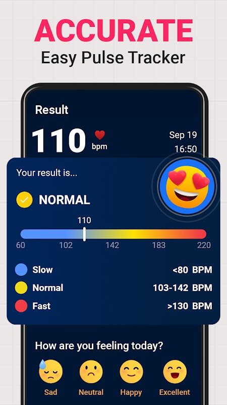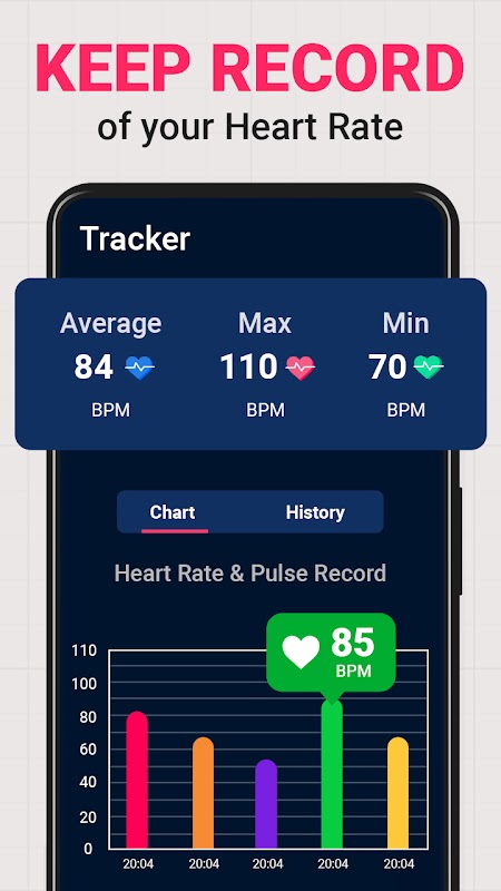 Accurate heart rate app to monitor and track your heart rate & pulse.