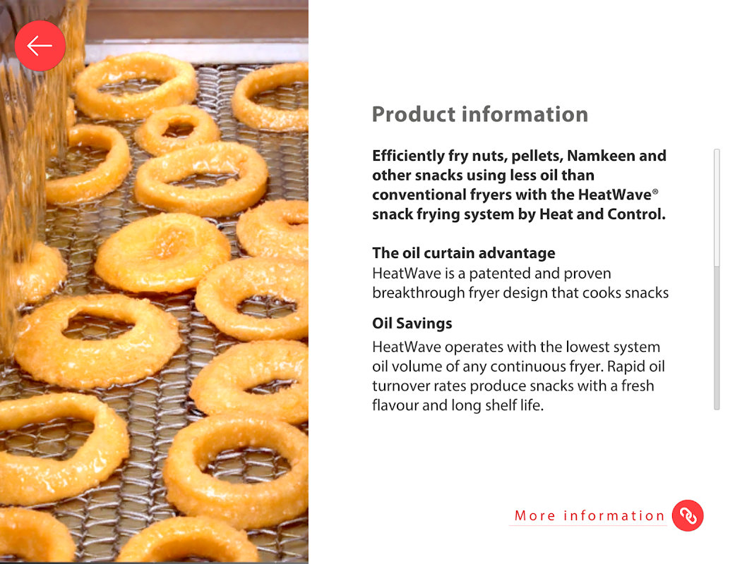 Interact with, and learn more about this breakthrough fryer design that cooks with curtains of clean filtered oil to produce the highest quality product. Send enquires straight from the app to get in touch with a local sales representative.