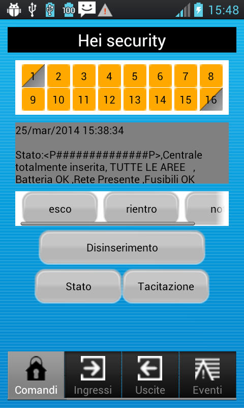 CAME's HEI security lets you manage CP series control units (fitted with 001SIGSM module) via simple text messages. A special menu lets you send the available commands to the control unit (that is, arm, disarm, activate outputs, read events, and so on) immediately and intuitively, and totally securely.
