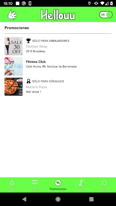 • تبلیغات برای بارها، رستوران ها و فروشگاه ها را فقط برای کاربران Hellouu پیدا کنید