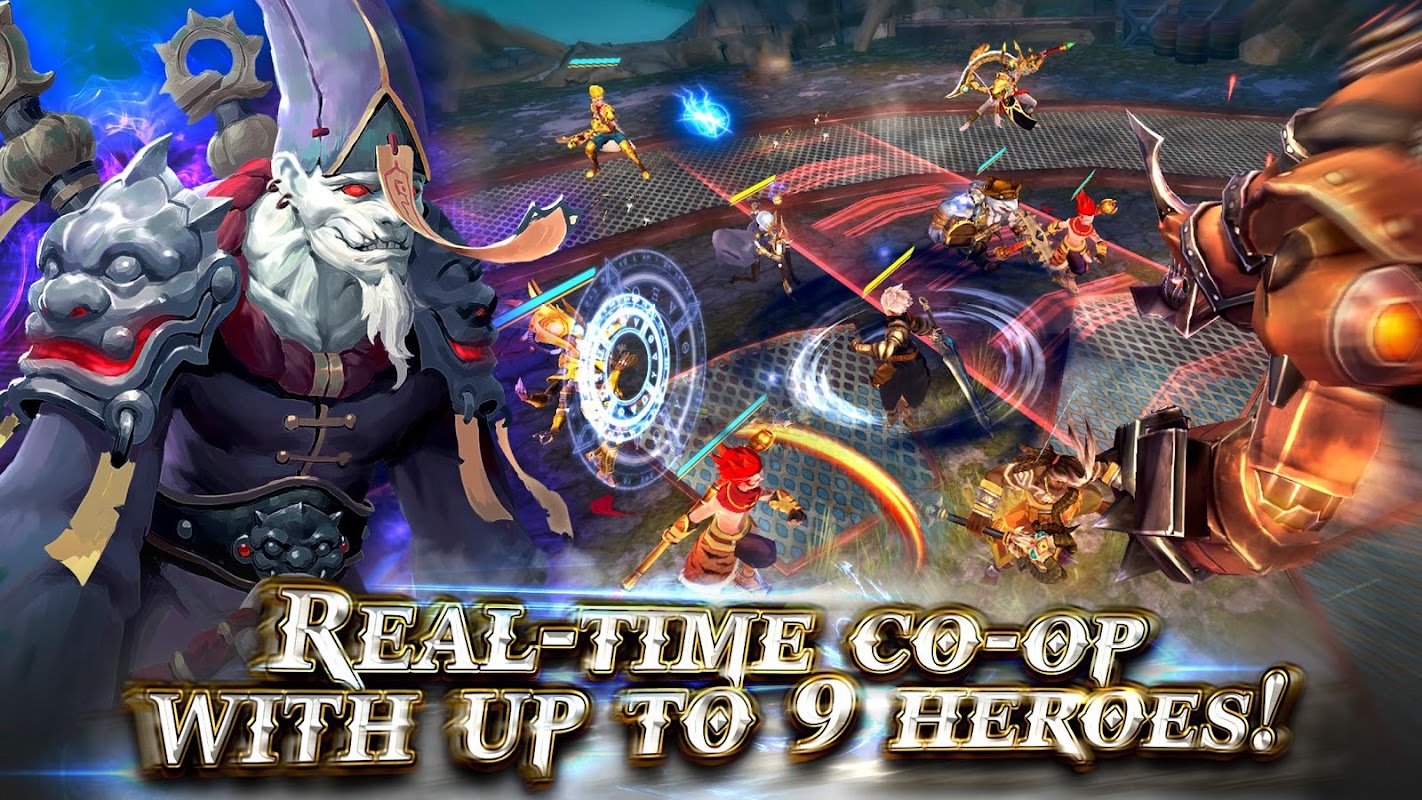 - Co-op Boss Raid – hack and slash with two friends - up to nine Heroes at once, all in real-time!