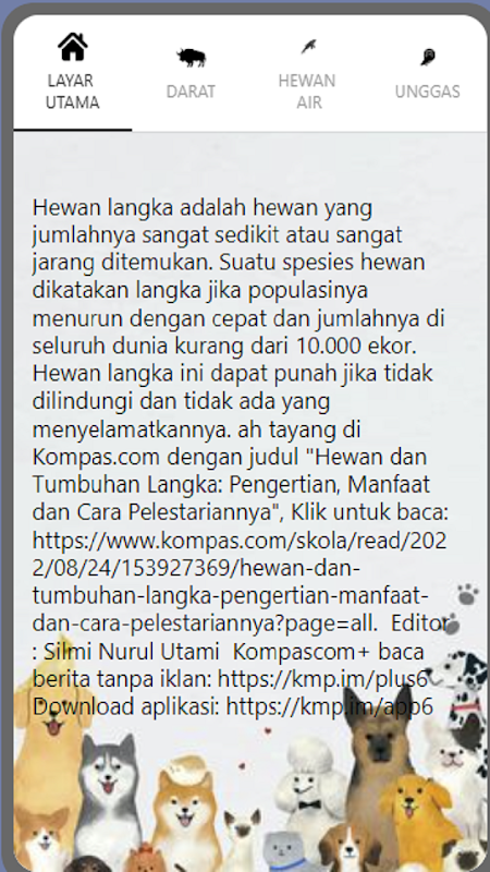 این برنامه برنامه های آموزشی است که اطلاعاتی در مورد حیوانات در حال انقراض به زبان اندونزیایی ارائه می دهد. با کلیک روی تصویر، برنامه کار خواهد کرد.