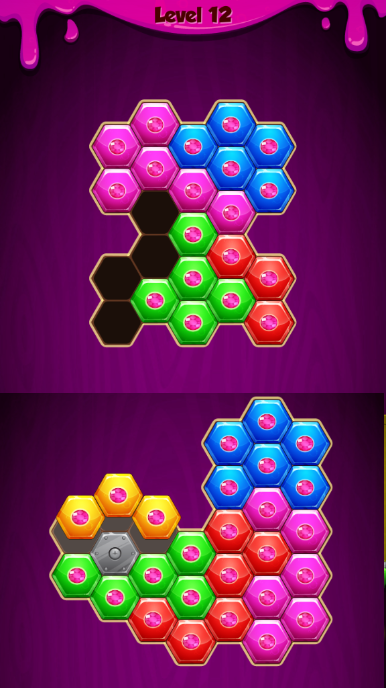• Drag the hexa (hexagon) puzzle blocks to move them.