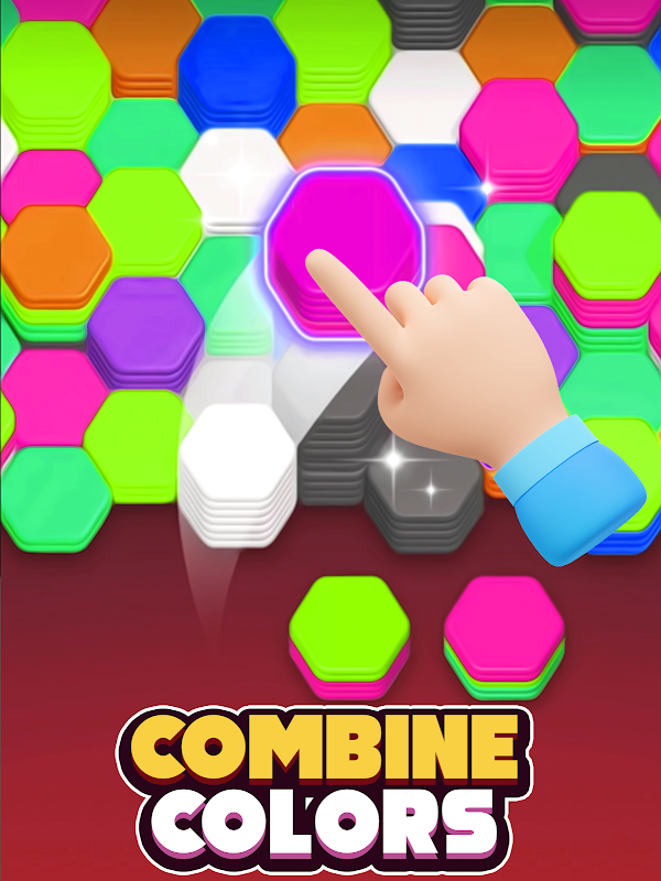 • بلوک های هگزا یک رنگ را مرتب کنید، پشته کنید و ادغام کنید