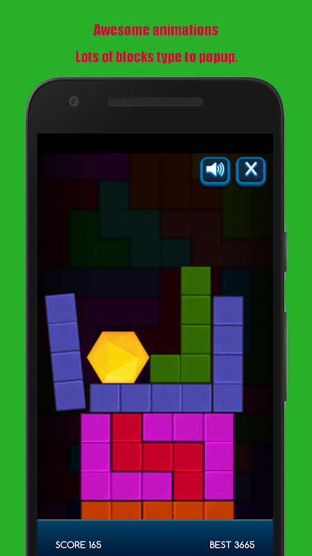 Tap on boxes to remove them, hexagone will fall freely. Pop the special boxes for extra score.