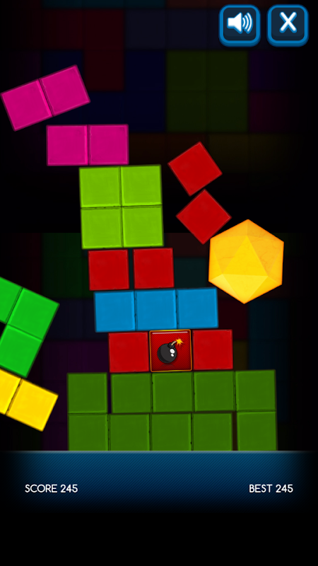 The game play is simple: there is a tower of blocks of various shapes, upon which sits another hexagonal block. The aim of the game is to move the hexagon down the screen to earn points. To do this, you tap the different blocks, which will make them disappear. The hexagon can then fall into the empty space left behind.