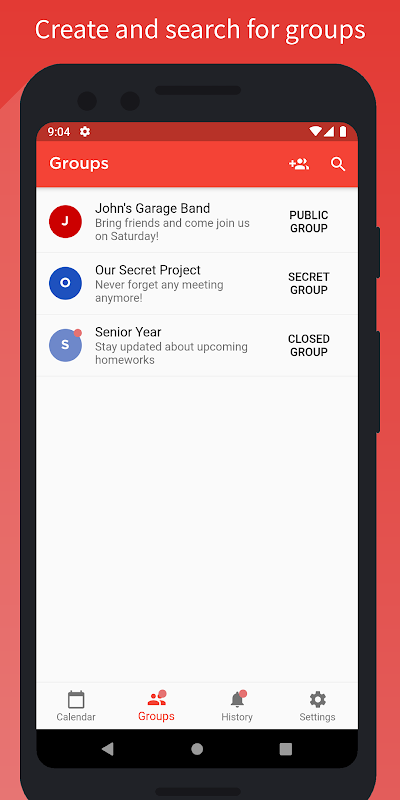 برای شرکت ، پروژه یا کلاس خود گروهی ایجاد کنید یا به آن بپیوندید و تقویم مشترک خود را در جیب خود قرار دهید. HiCal به شما کمک می کند تا در موقعیت های مختلف خود را سازماندهی کنید و با دوستان و همکاران خود همکاری کنید!