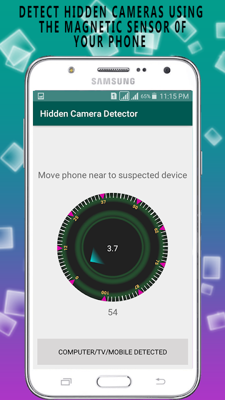 A investigation hidden camera detector app radiation meter will show you the depth of magnetic flux and magnetic radiation. hidden camera detector app detection Different hidden camera and spy devices and other electronic devices such as TV, speakers etc have different range of magnetic radiations.