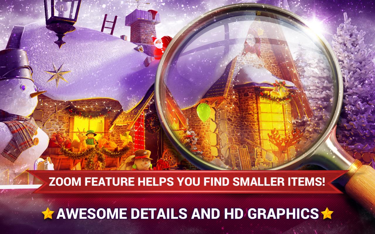 Hidden objects Christmas are here for you to enjoy playing them every day! Get your cozy blanket and have the best Christmas night ever! Wake up happy on a Christmas morning and start playing this Christmas wonderland game! Christmas hidden objects are waiting for you! Make a Christmas wish and find all hidden objects in the picture! If you love Christmas games free, we guarantee that you'll enjoy playing hidden objects games for Christmas! Decorate your Christmas Tree with the best ornaments and lose yourself in these magical hidden object mystery puzzles. Make a white Snowman in your backyard and wait for Santa Claus to come! If you want to have the best hidden object games 2019, you're at the right place! Christmas time is near, so hurry up and get your copies of these fantastic hidden object games free new! Your Christmas wish will come true! Hidden Objects Christmas Magic just for you!