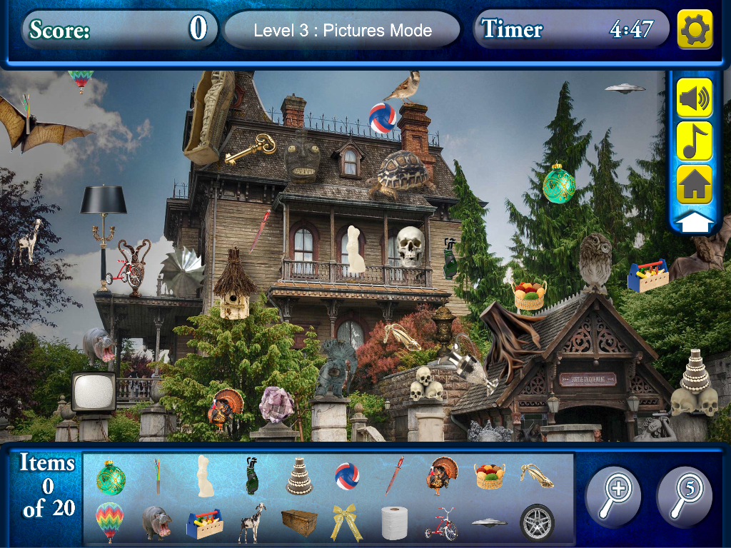 Use hints, and zoom in to see objects that are difficult to find!