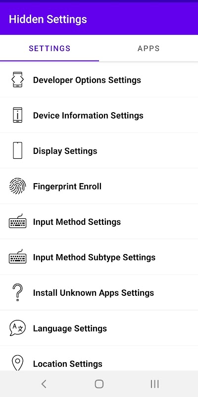 برنامه تنظیمات پنهان، دسترسی سریع به برخی از تنظیمات موجود در برنامه تنظیمات را فراهم میکند. از این برنامه برای دسترسی سریع به تنظیمات مورد نظر خود استفاده کنید. تنظیمات پشتیبانیشده شامل موارد زیر است: