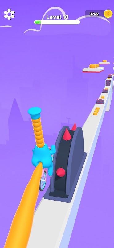 Collect the oranges elements on the way to go up with the bike. Avoid the obstacles and get as high as you can.