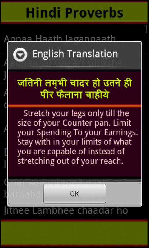 Must have hindi proverbs app. Try it, love it, and you'll never regret it.