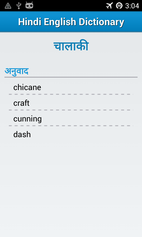 * انگلیسی به بخش هندی (अंग्रेजी - हिन्दी शब्द अनुवाद): پیدا کردن ترجمه هندی / این معنی که برای واژه های انگلیسی. برای جستجو، نوع کلمه مورد نظر برای جستجو در زمینه جستجو و کلمات تطبیق به طور خودکار ذکر شده است.