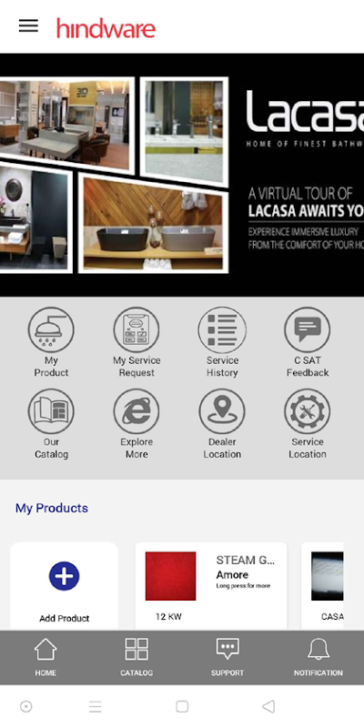 1. محصول من: در این ویژگی مشتری می تواند محصولات Hindware را فقط در چند شیر اضافه کرده و شکایتی را برای سرویس محصولات خود ایجاد کند.