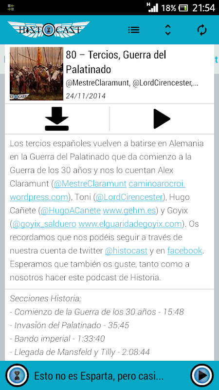 Con la app de HistoCast podrás escuchar y descargar nuestros podcast directamente en tu SmartPhone, así como estar al tanto de las últimas noticias. Desde HistoCast esperamos que os sea de gran utilidad.
