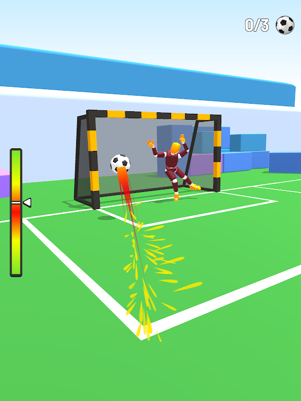Aim for the goal and make the keeper cry! Shoot as hard as possible and score as many goals as possible!